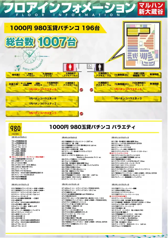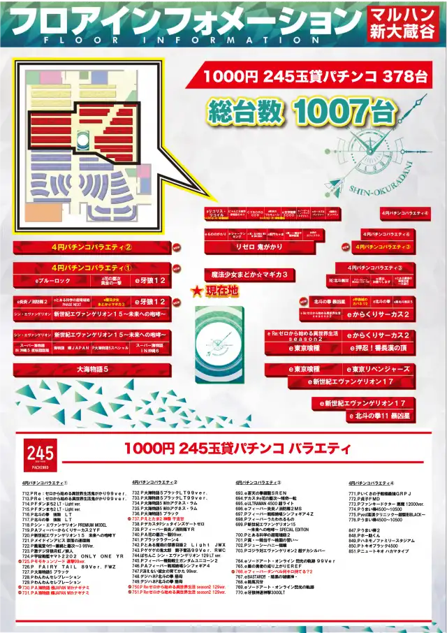 マルハン新大蔵谷店の機種情報