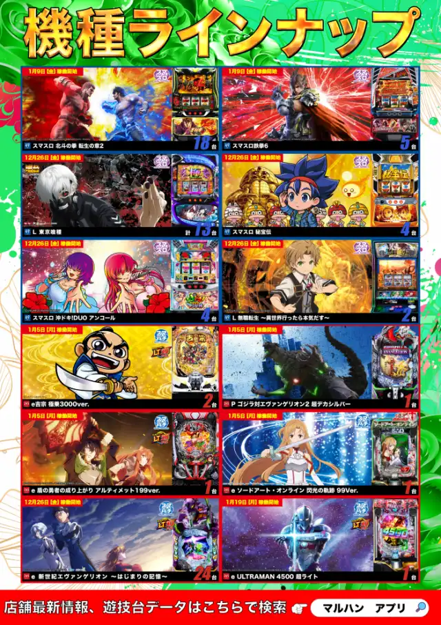 1月9日(金)新台入替!朝10時オープン!