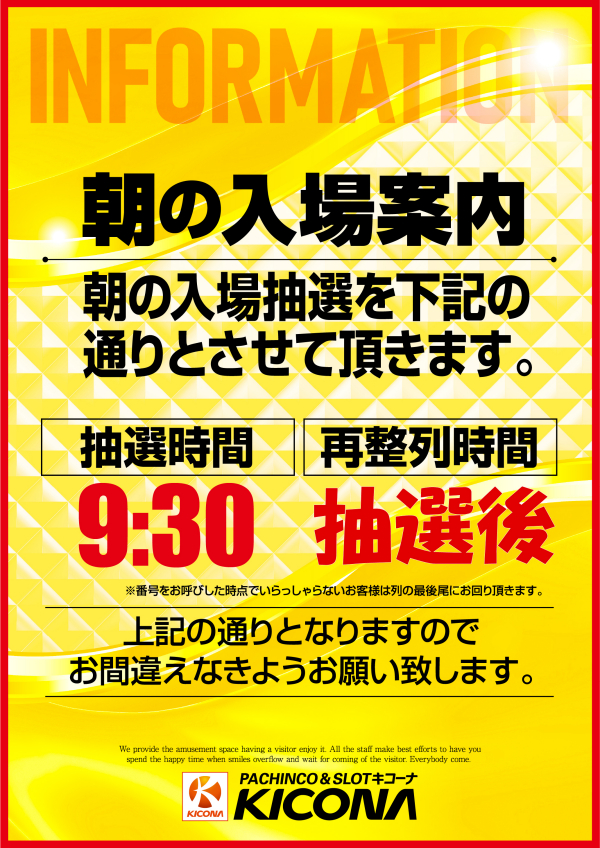 本日6月1日より抽選時間が9時40分になります!!