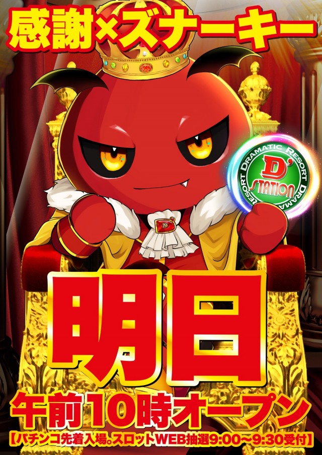 スロット入場抽選はWEB抽選に変更しました。抽選受付時間9:00~9:30 |
