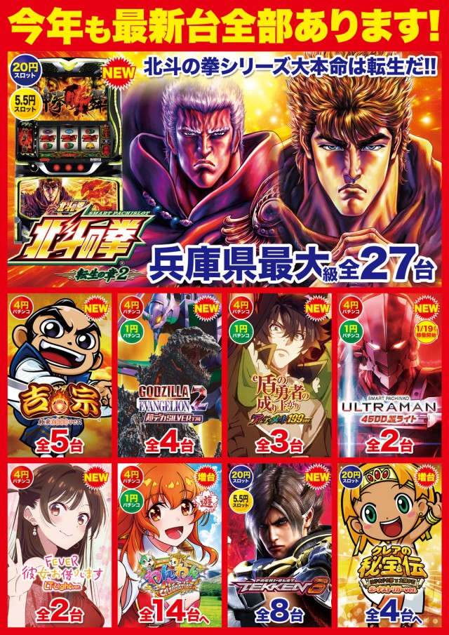 2月4日(水)新台入替準備の為、店休日とさせて頂きます。