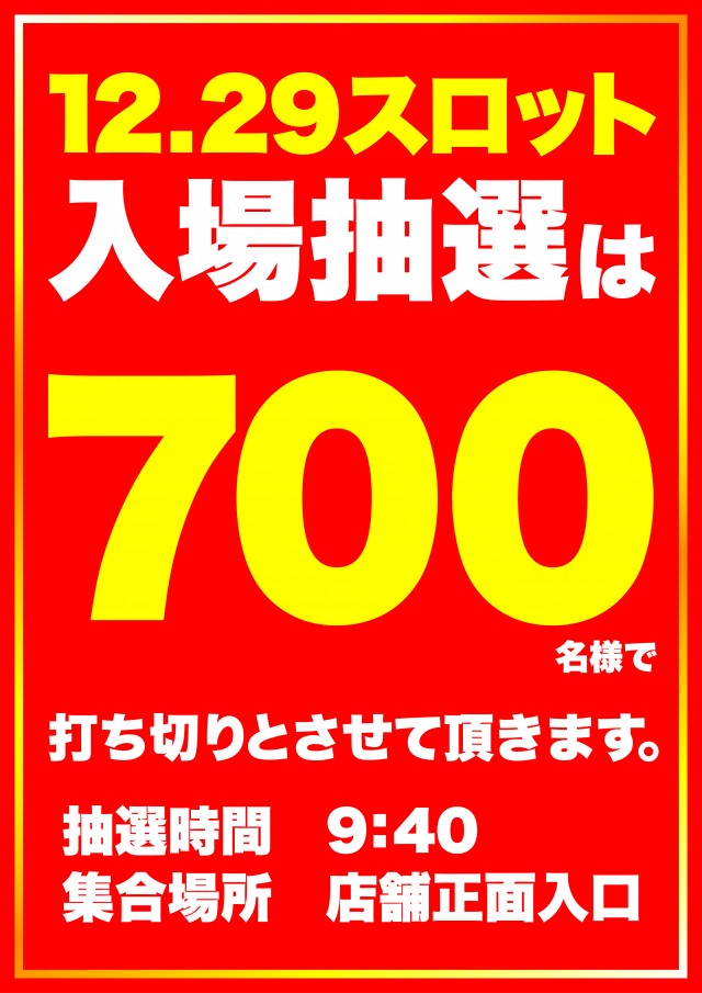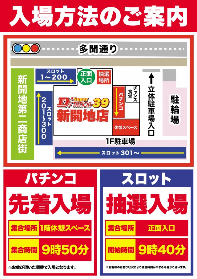 スロット入場抽選はWEB抽選に変更しました。抽選受付時間9:00~9:30 |