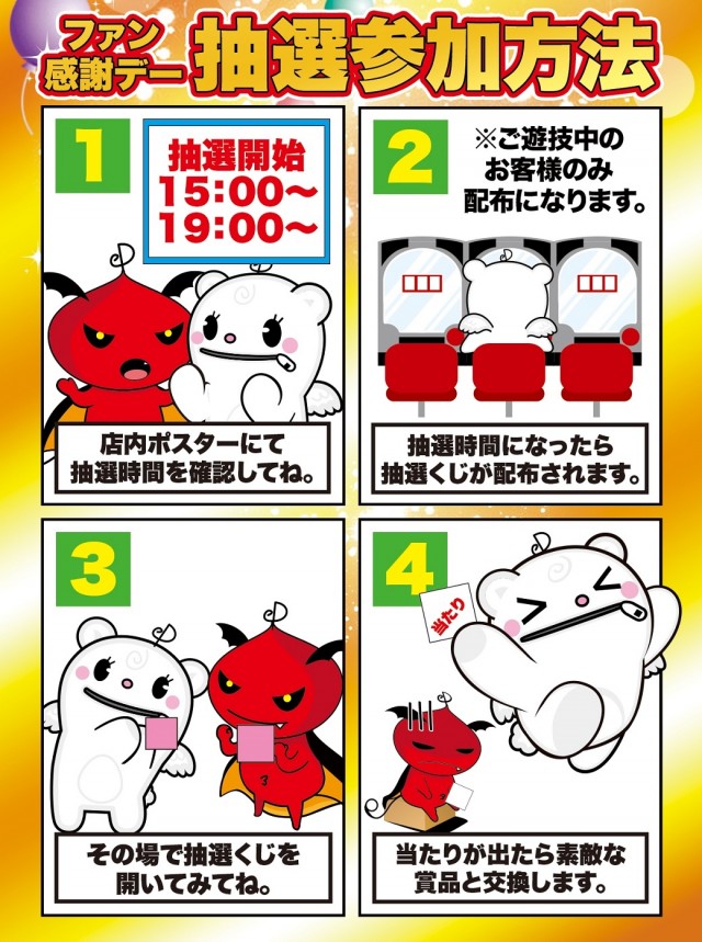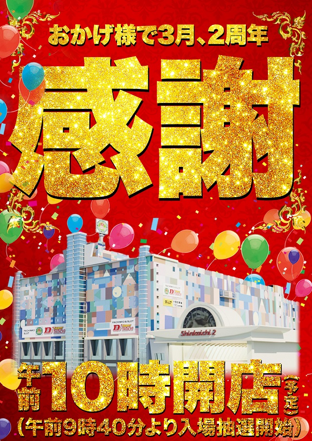 スロット入場抽選はWEB抽選に変更しました。抽選受付時間9:00~9:30 |