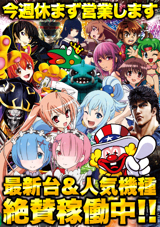 スロット入場抽選はWEB抽選に変更しました。抽選受付時間9:00~9:30 |
