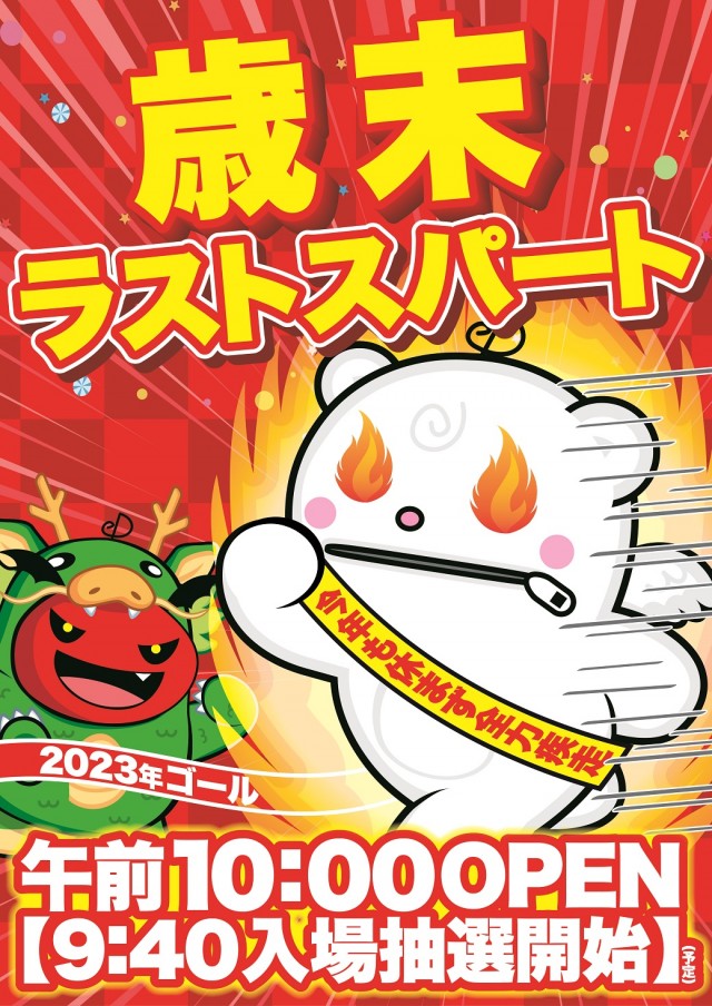 スロット入場抽選はWEB抽選に変更しました。抽選受付時間9:00~9:30 |