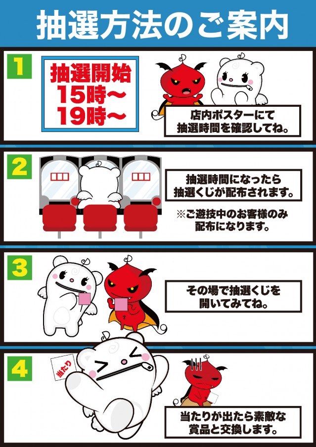 スロット入場抽選はWEB抽選に変更しました。抽選受付時間9:00~9:30 |