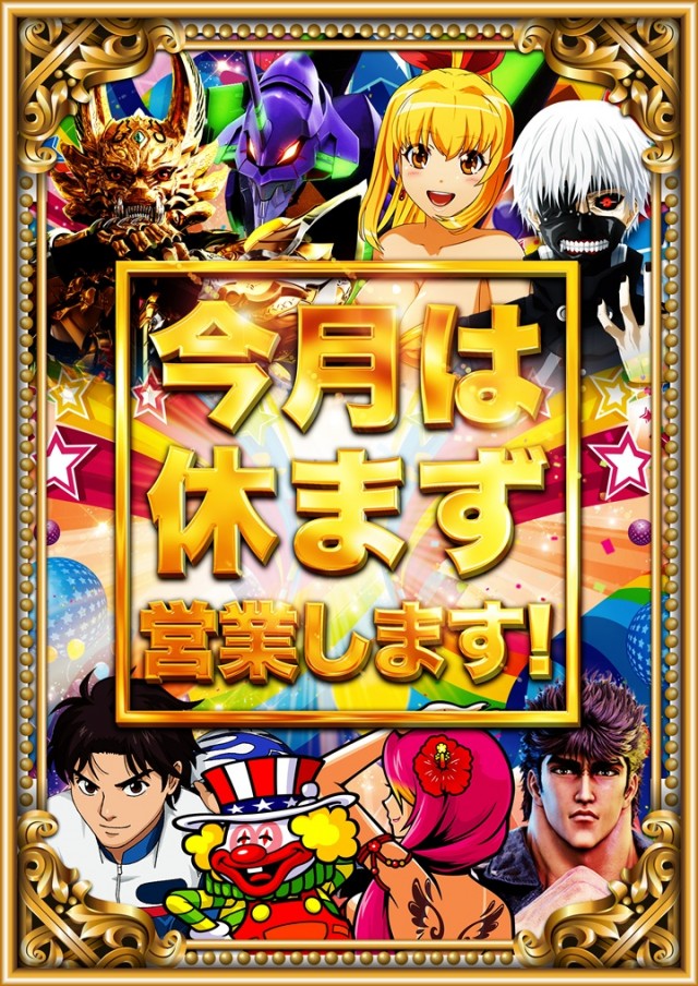 スロット入場抽選はWEB抽選に変更しました。抽選受付時間9:00~9:30 |