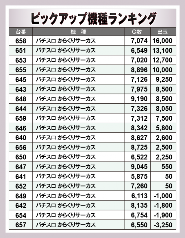 ※出玉数順に掲載しています