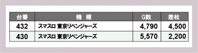 ※台番号順に掲載しています