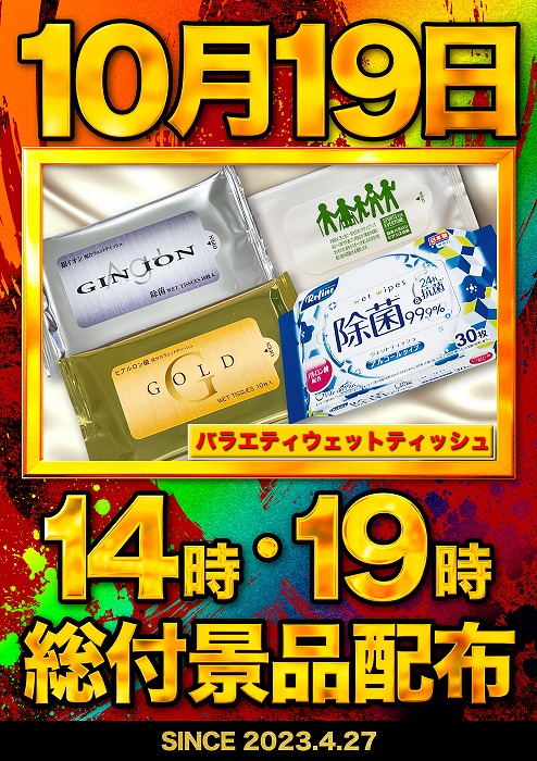 10月19日【日】朝10時開店!!ブログ更新!!総付配布♪