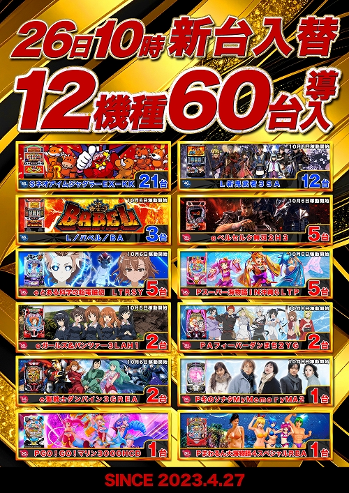 9月26日【金】新台入替初日!MGRブログ更新!
