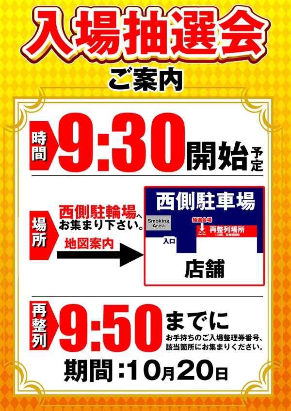開店時間AM10:00~閉店時間PM10:30(延長遊技10:50まで) |