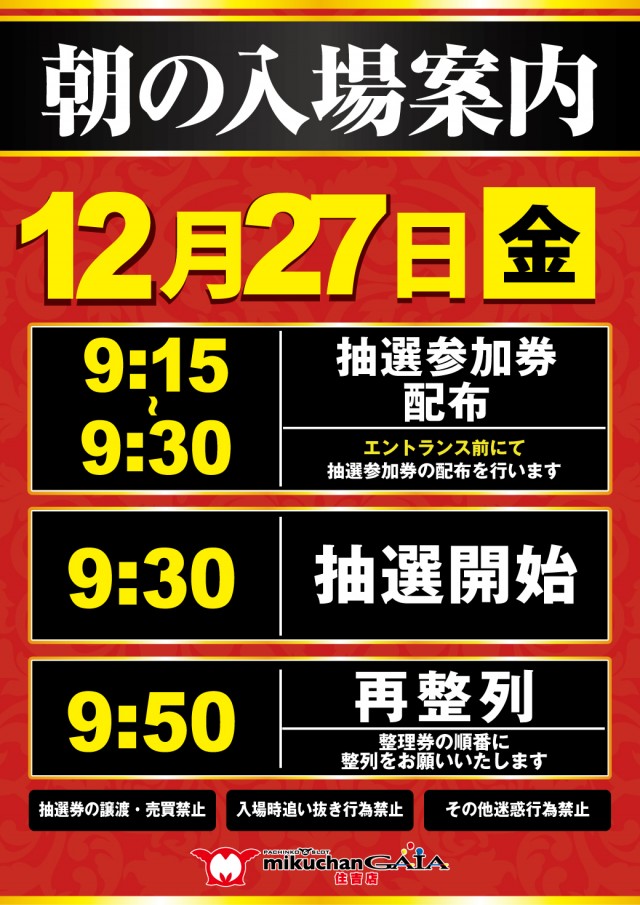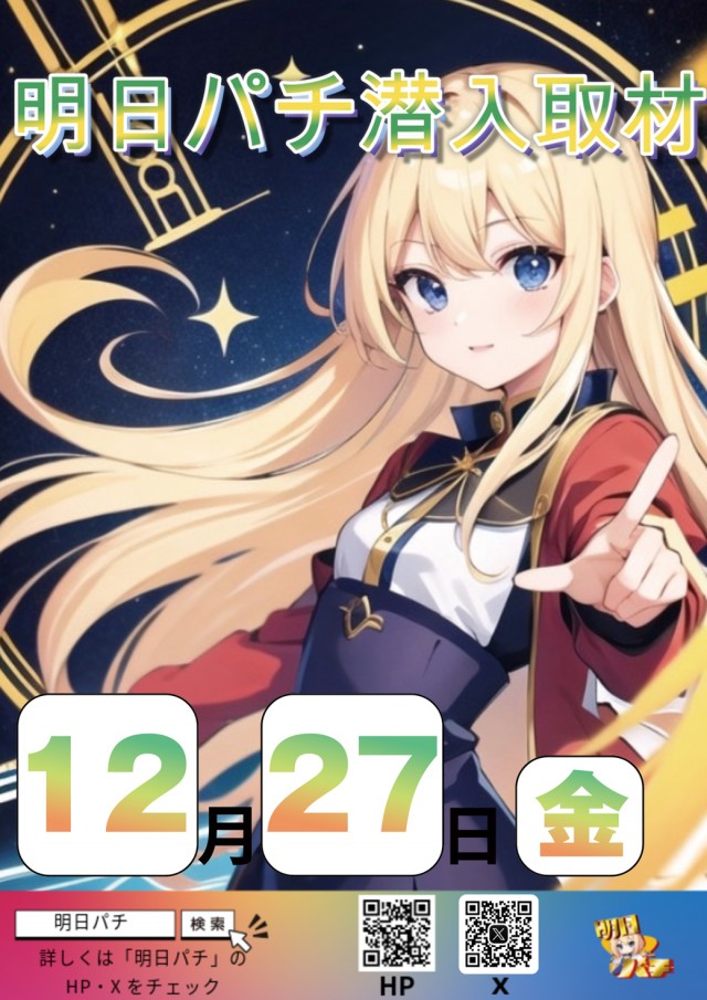 12月27日 新台×明日パチ潜入調査取材!抽選は9時30開始
