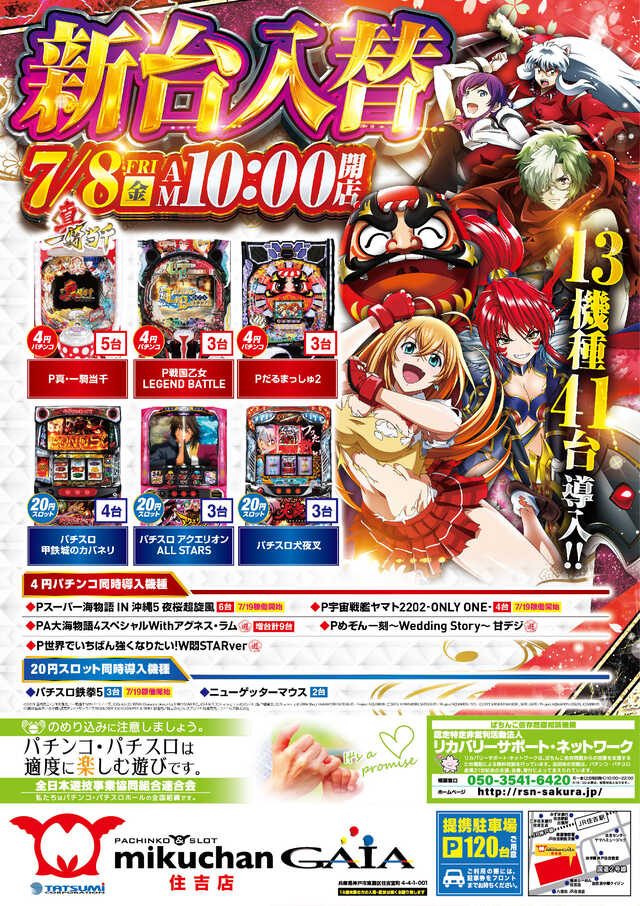 明日全店一斉10時オープン♫最新機種も稼働開始!!