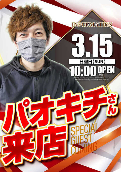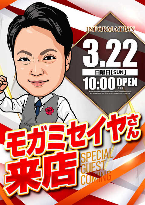 3月22日(日)モガミセイヤさん来店!抽選時間9:30~開始