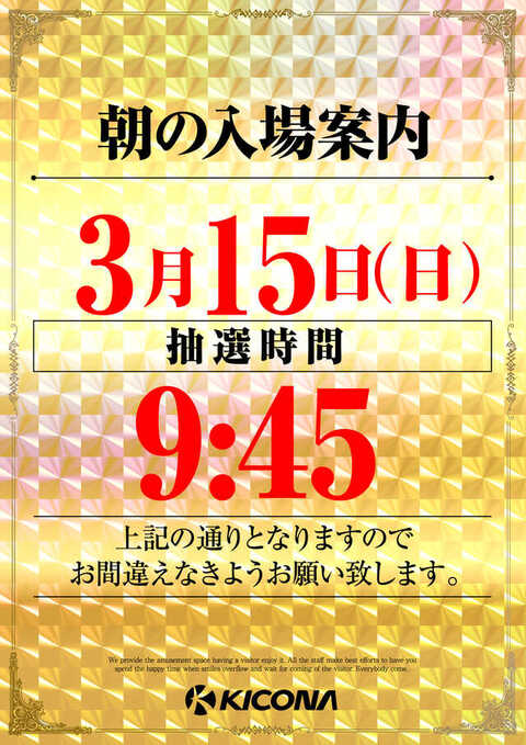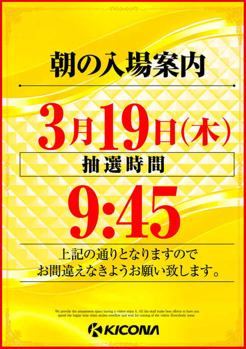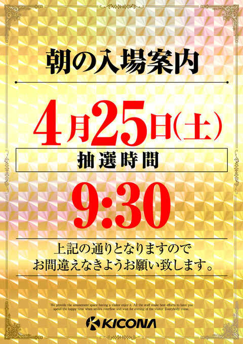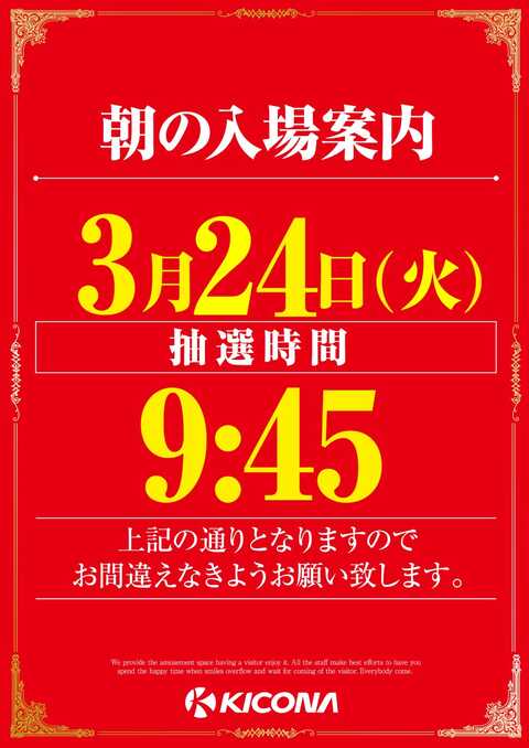 原則は入場抽選機での入場抽選となります。※変更する可能性が御座います。 |