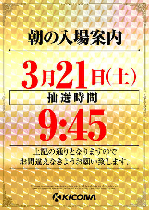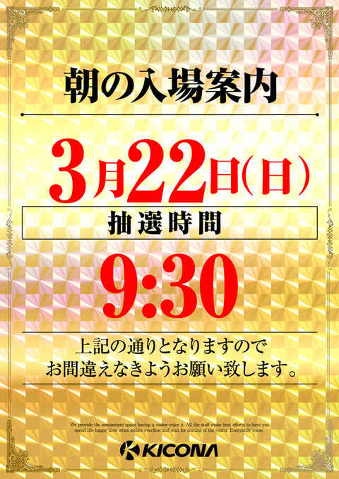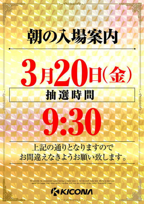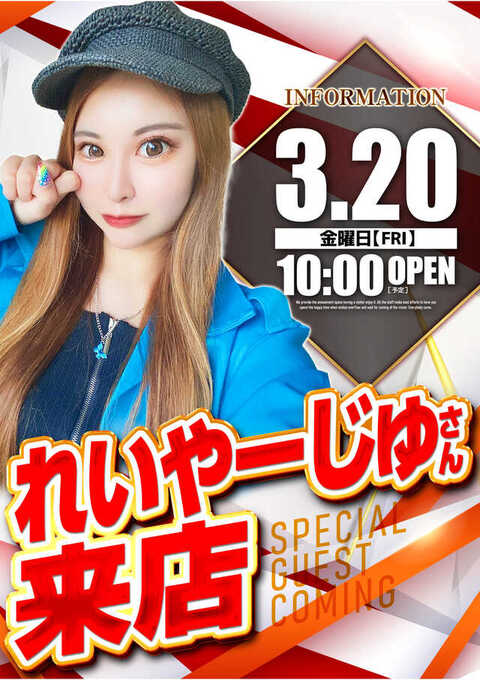 3月20日(金)れいやーじゅさん来店!抽選時間9:30~開始