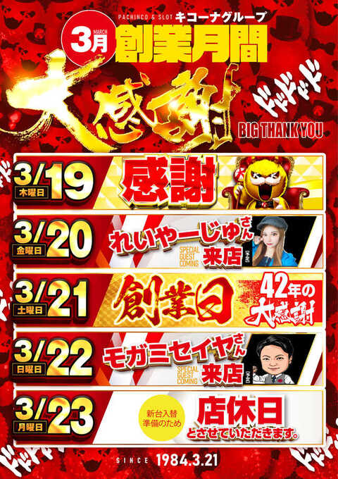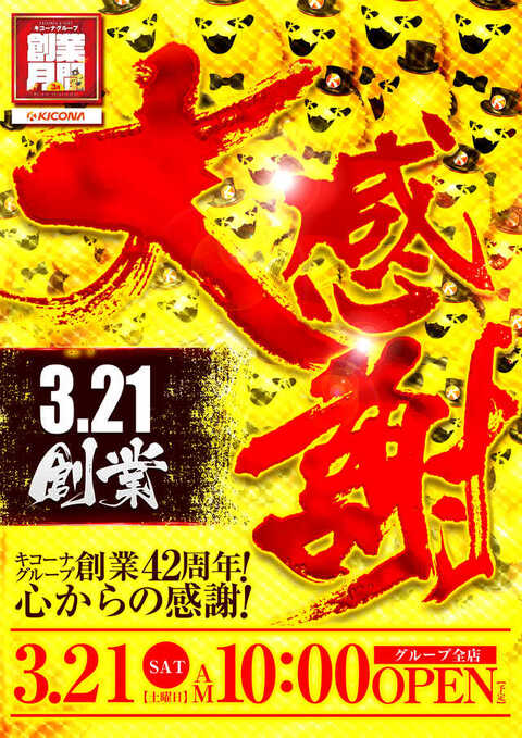 3月21日(土) 創業日!!42年の大感謝!!10時開店!!