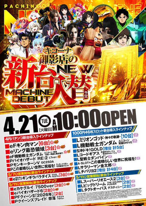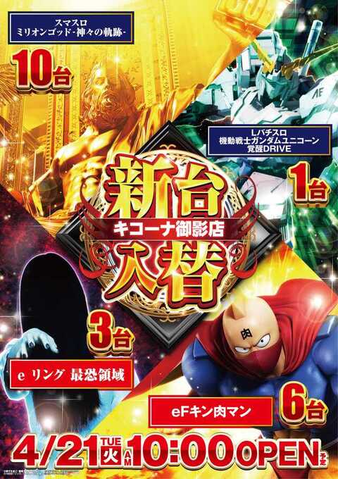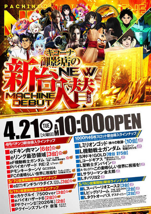 4月21日(火)新台入替初日!!10時OPEN!!