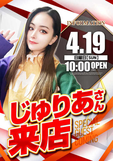 4月19日(日)じゅりあさん来店!抽選時間9:30~開始