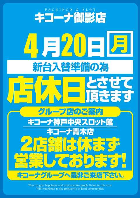 4月20日(月)新台入替準備の為【店休日】
