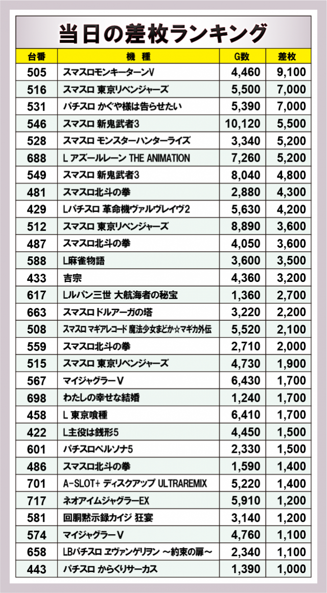 ※記事内の差枚表記はぱちタウン独自調査に基づくものです。ご了承ください。