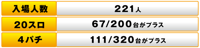 ただ、パチンコ全体では、320台中111台がプラスだったものの、トータルの差玉数では-22,400発に終わった。