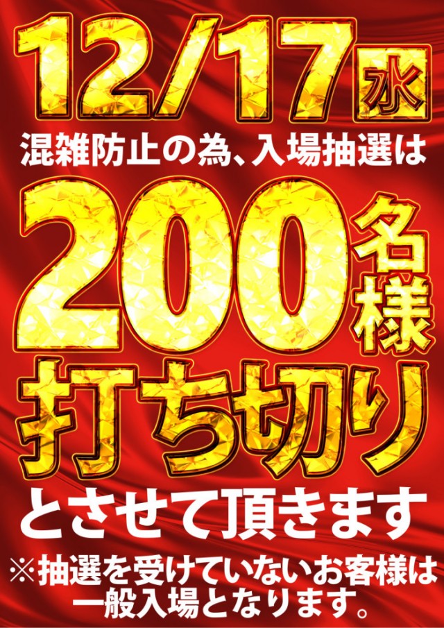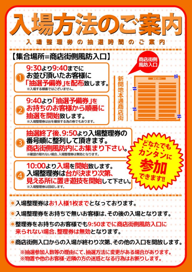 誰でも簡単に参加出来ます☆9:30~9:40までに店舗集合、9:40より抽選開始☆ご不明な点等は当店スタッフにお気軽にお問合せください。 |
