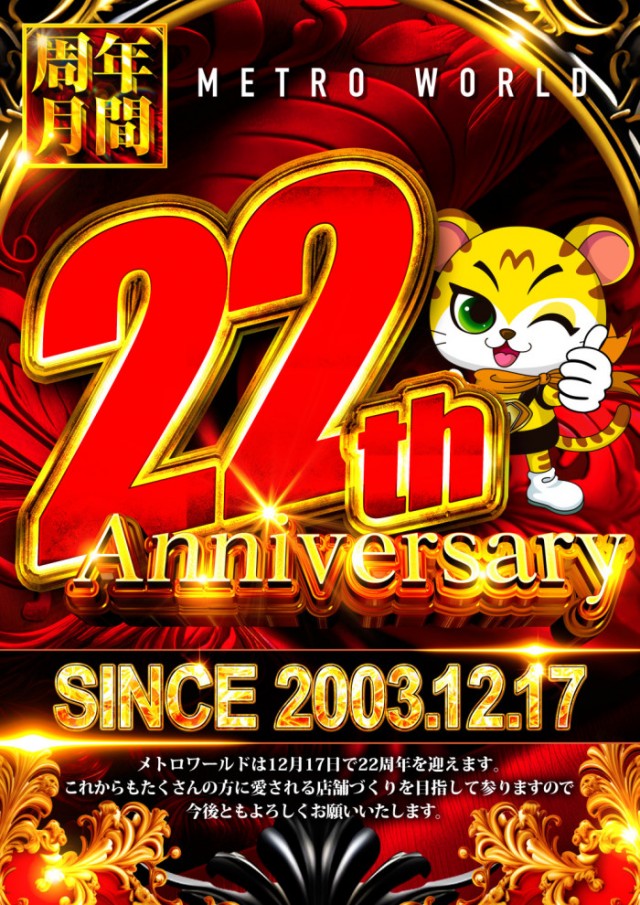 本日で22周年を迎えます💓是非、ご来店下さいませ💓