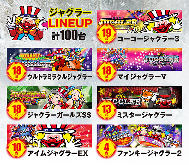 そのジャグ軍団の合計は7機種・計100台!