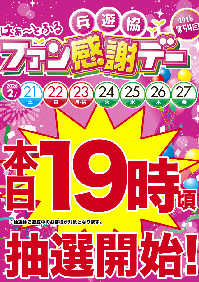 2/26(木)10時 第54回兵遊協主催!ファン感謝デー開催