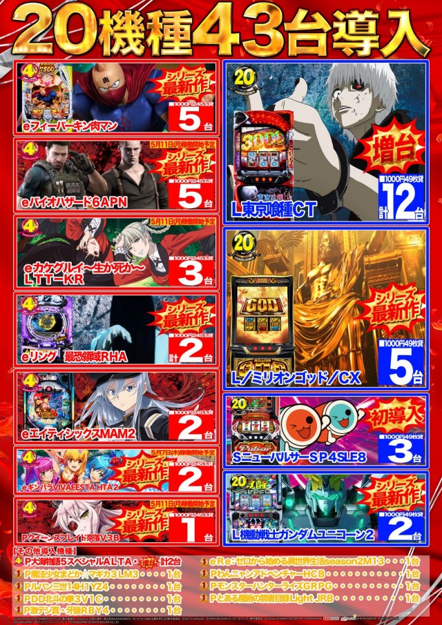 【4月24日(金)10時開店】4月第二弾! 新台入替初日!!