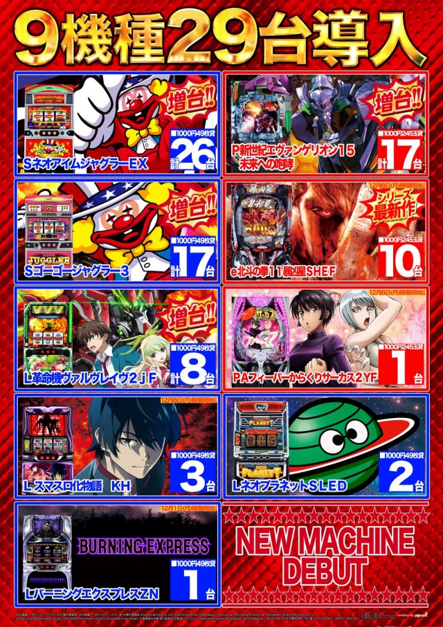 【11月29日(火)10時開店】新台入替済!14機種45台!