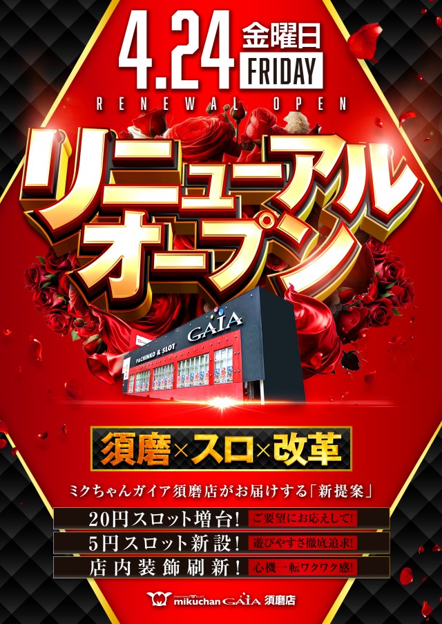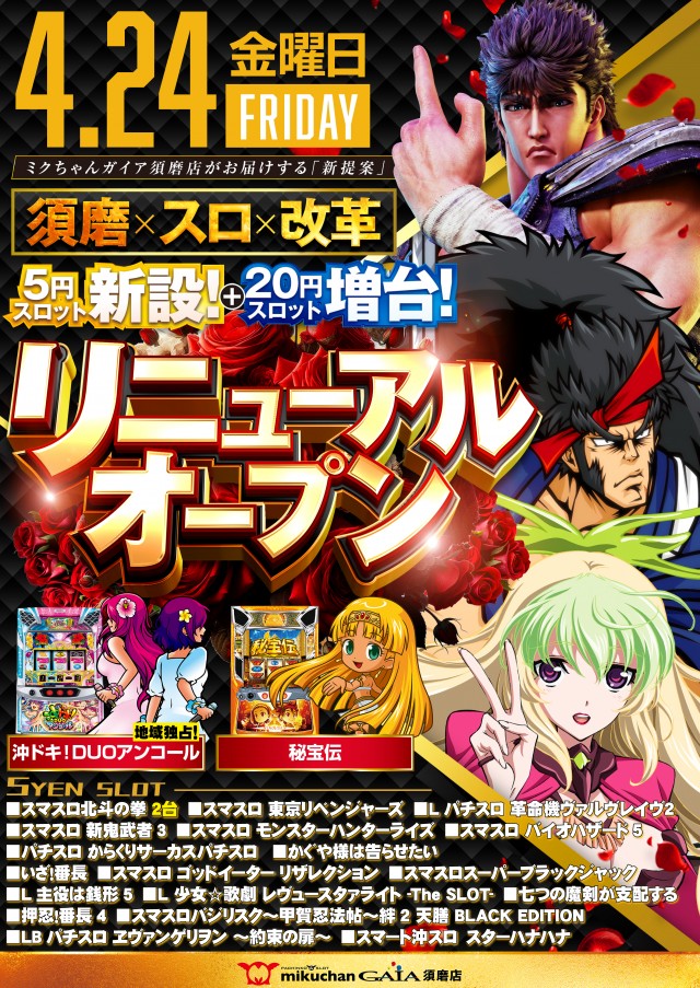 新台入替前日のみ、お休みとさせて頂きます。 |