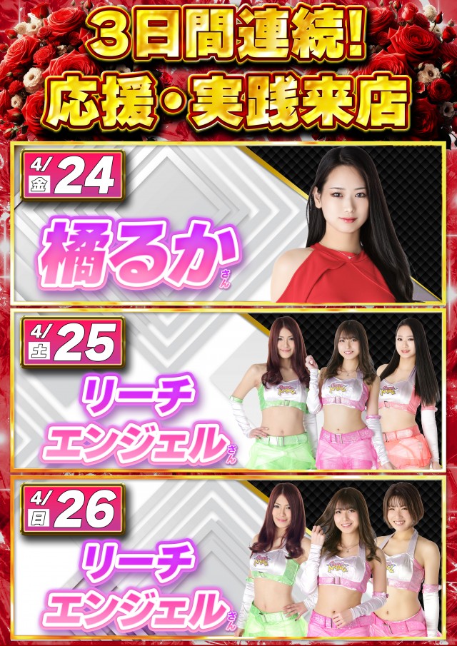 1位 4月23日(木) 2位 4月19日(日) 3位 4月21日(火)