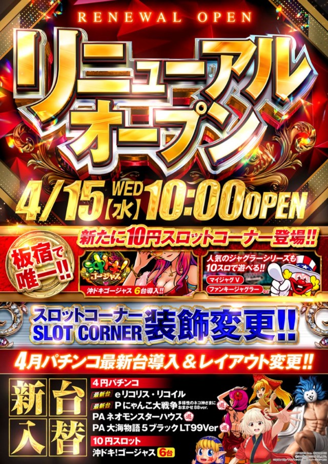 リニューアルオープン初日!沖ドキゴージャスなどがオススメ!