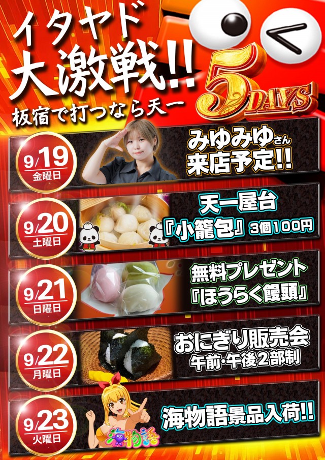 9月11日[木] 新台入替2日目!!天一のオススメ!!