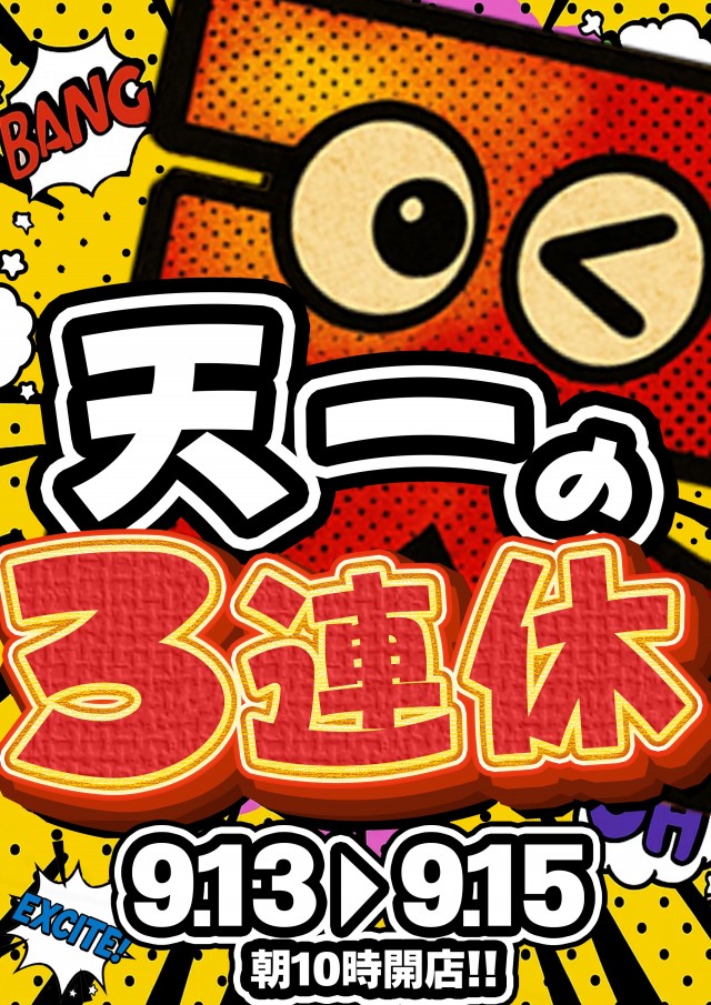 明日9月13日【天一の3連休】ご来店お待ちしてます!