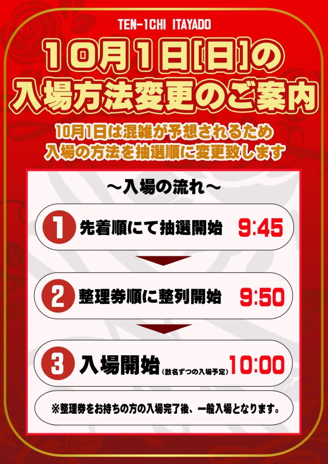 明日!! < 9:45から【抽選】をおこないます!! >