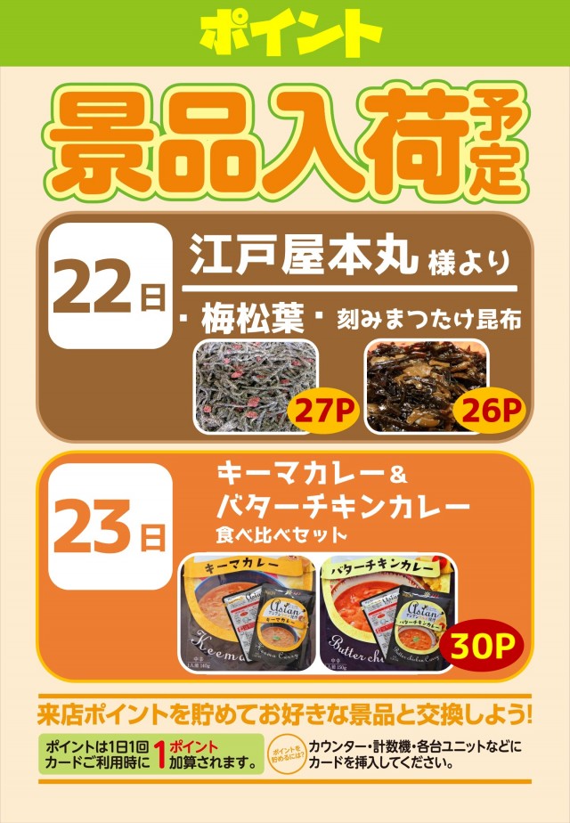 2月22日(日) ポイント景品入荷予定❗❗