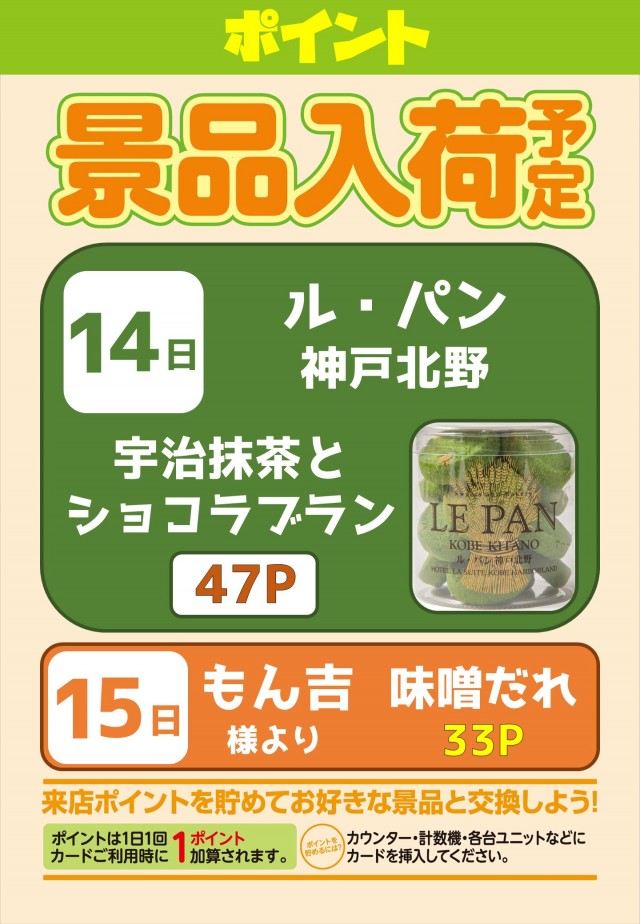 ポイント景品入荷予定!!