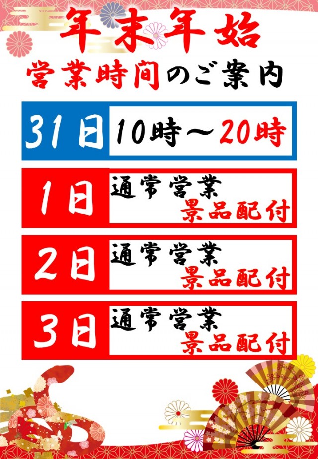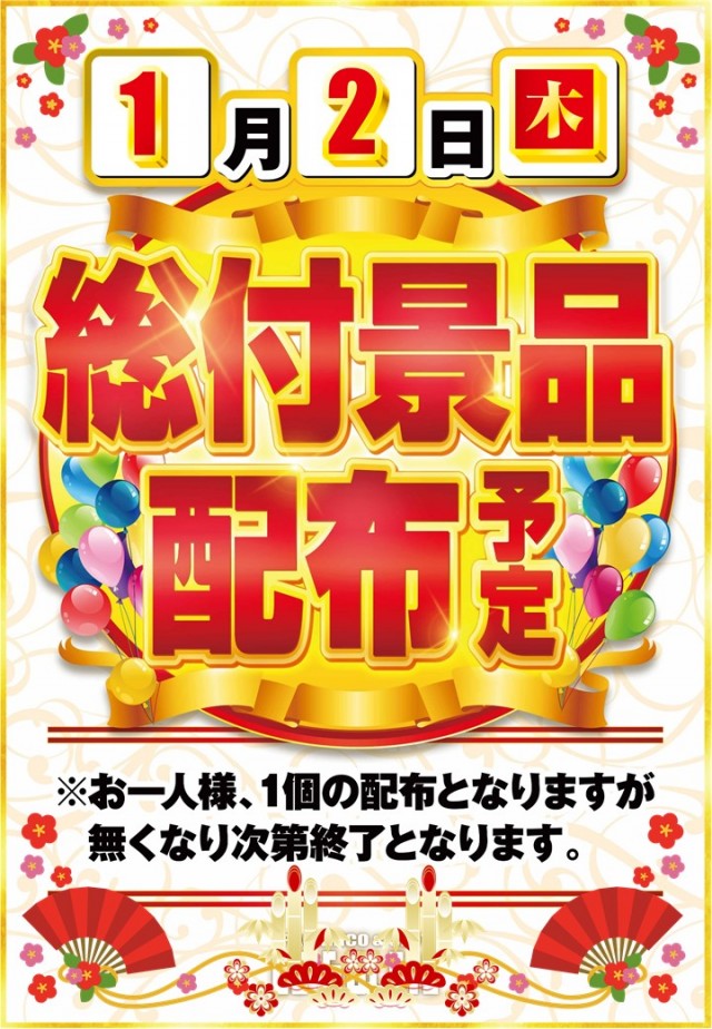 明日1月1日(水)◆景品配付予定◆9:45~抽選実施!!