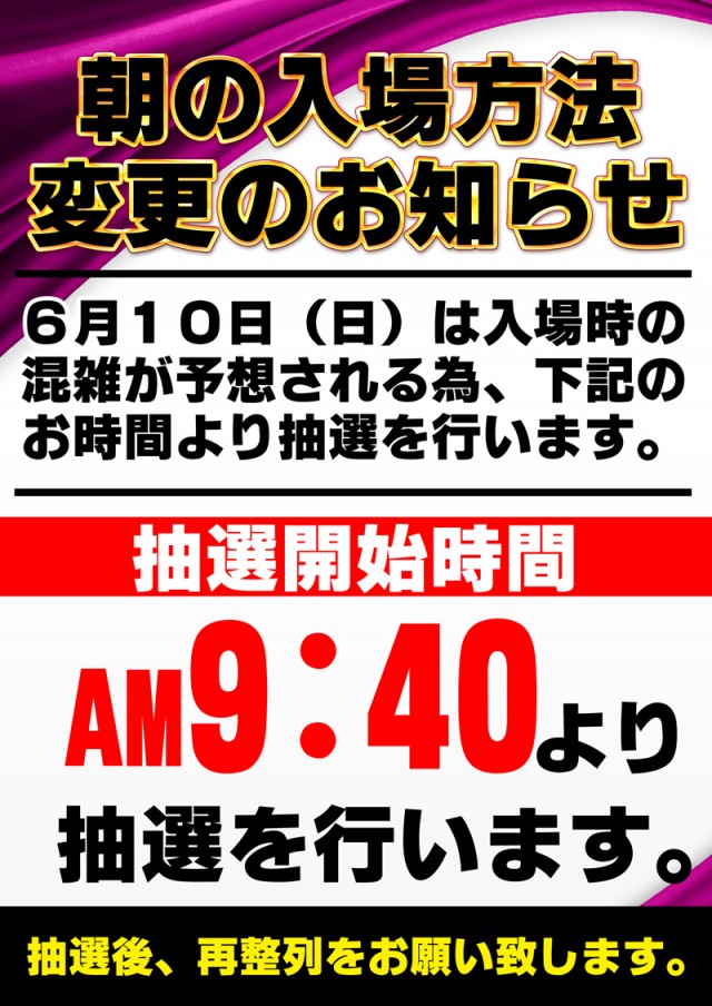 ☆明日の抽選は9時40分開始☆混雑が予想されますのでお早めに