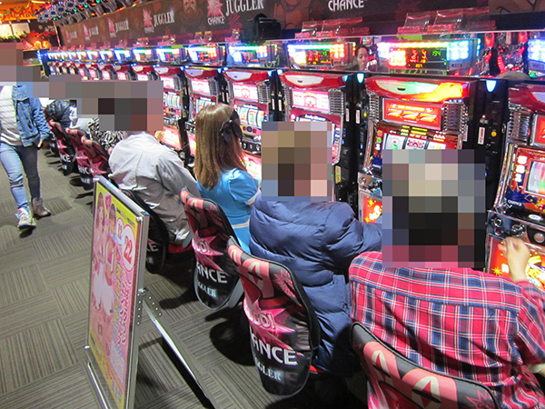パチンココーナーでは、「CRスーパー海物語IN沖縄4」や「CRルパン三世~Lupin The End~」がにぎわってま~す! そのほかにもアチコチに笑顔で遊技されるお客さまをたくさん目撃! 盛況ですね~♪