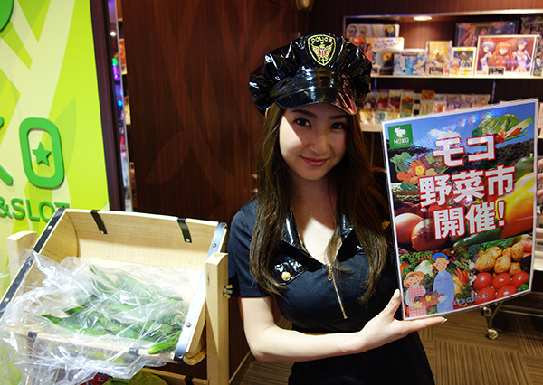 ホール内では「モコ野菜市」がおこなわれており、さまざまな野菜が用意されていました。