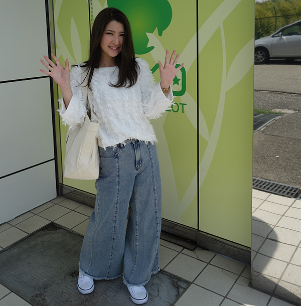 まずは私服姿を披露してくれました☆ 春らしさが感じられて可愛いね!