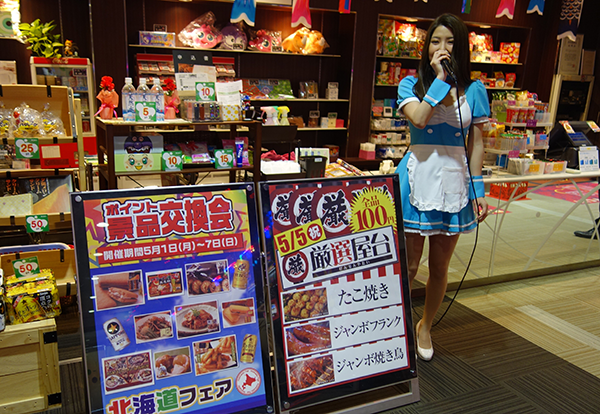 メイド風コスチュームに身をまとい、マイクパフォーマンスで活躍中のみかちゃん。