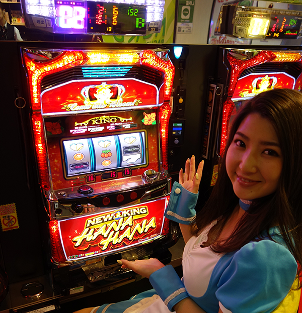 みかちゃんが実戦機種に選んだのはモコ田尾寺店でも大人気の「ニューキングハナハナ-30」。