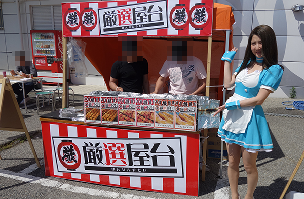 この日は店前に焼き鳥やたこ焼きを販売する屋台が出ていました。