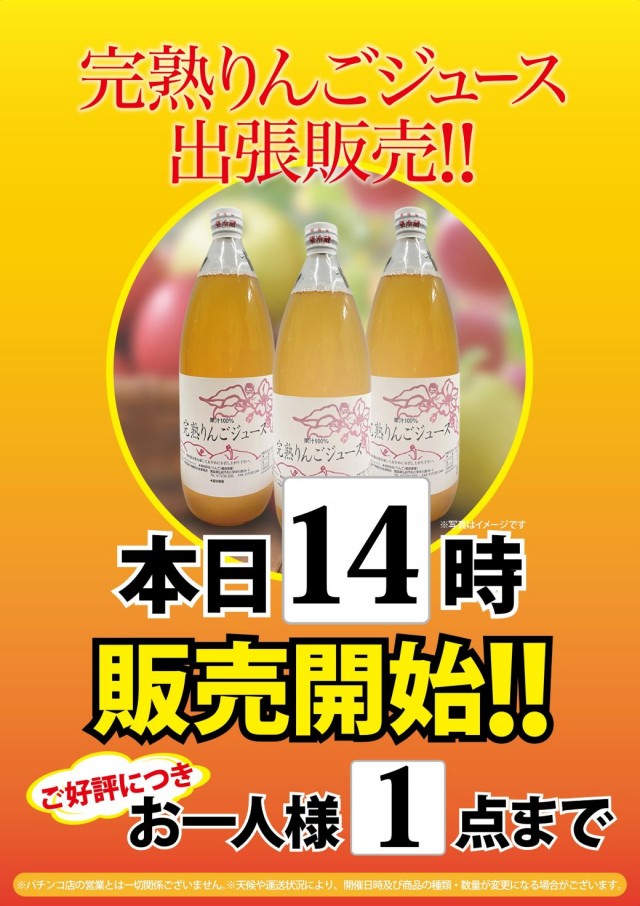 明日8月16日完熟林檎ジュース出張販売&ゆかゆかさん来店予定